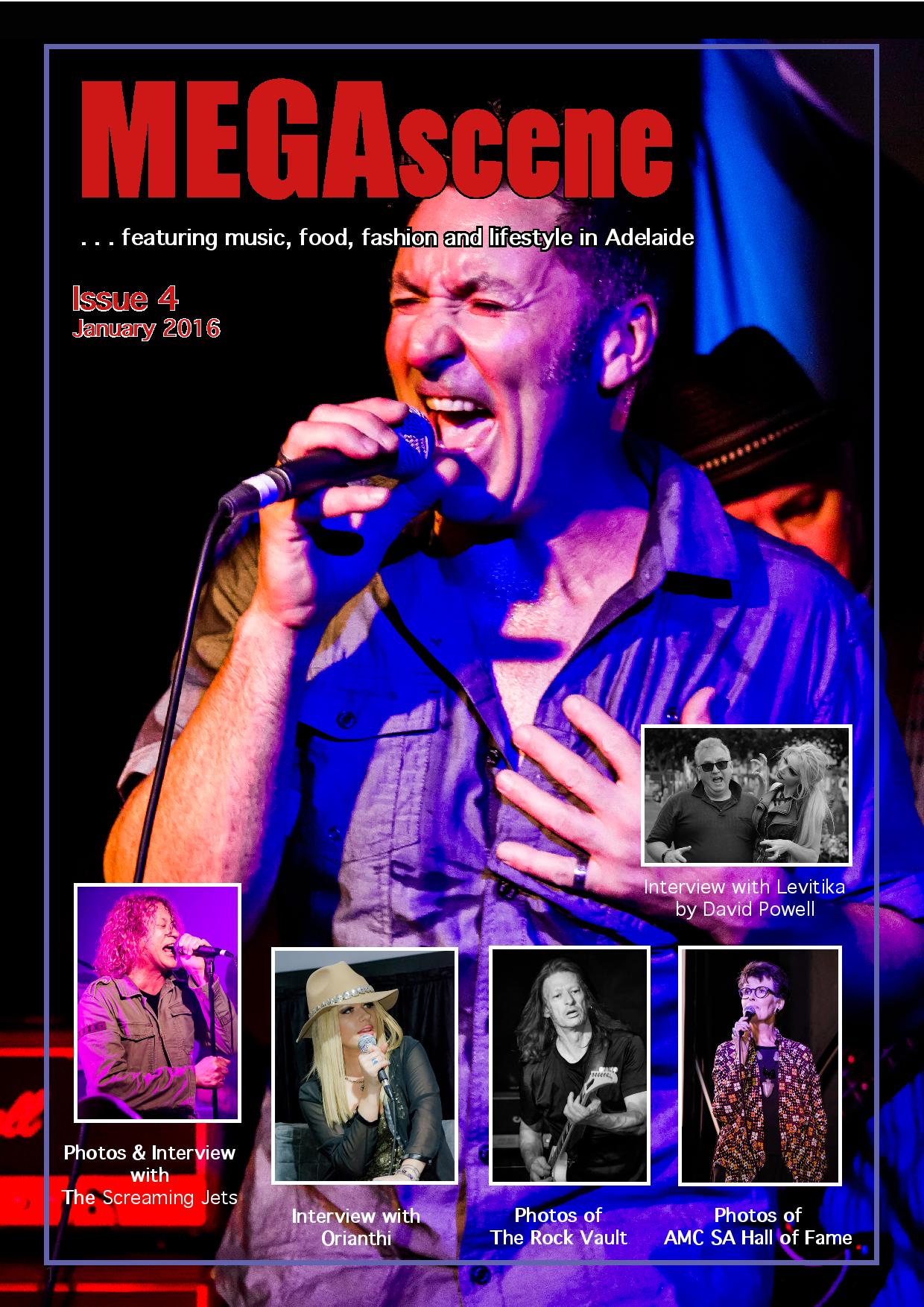 Issue 4 of MEGAscene has interviews and photos of The Screaming Jets, Orianthi and Levitika, and photos from The AMC SA Hall Of Fame Inductions and photos from The Rock Vault gig.